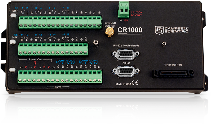 CR1000数据采集器是Campbell数据采集器里面性价比最高的一款。它提供传感器的测量、时间设置、数据压缩、数据和程序的储存以及控制功能,由一个测量控制模块和一个配线盘组成,具有强大的网络通讯能力。