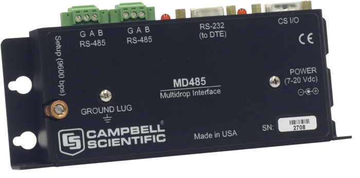 MD485多路模块是一款智能型组网设备,能够将多个CSI出品的CR系列数据采集器连接在一起,并与计算机连接,从而组成一个大型观测网络。MD485基于RS-485数据传输协议,支持RS-485、RS-232和CS I/O等多种接口类型,其最大传输距离可达1219.2m(4000英尺)。同时MD485还可实现数据采集器之间的直接通讯、数据采集器的远程呼叫、计算机与打印机连接、CC5MPX数码相机与数据采集器之间的通讯连接,从而使各种设备形成一个完整的、功能强大的网络。MD485耗电量很小,数据采集器的12VDC即可满足其需要。