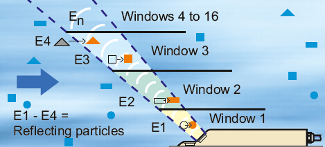 超声脉冲按照一定的角度发射到介质中,介质中的反射物质 (颗粒物、矿物质和气泡) 将信号反射回来,反射回来的信号形成一幅图像。.