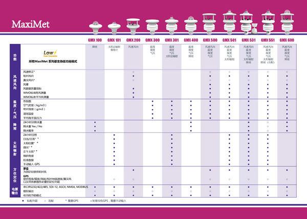 MaxiMet GMX系列一体式气象站在其小巧的体积中集成了多种传感器,通过灵活的组合实现系列化、家族化的产品线,从而能够满足不同用户群体在不同使用环境中的多种需求,成为一款性能出众、性价比高的一体式自动气象站。