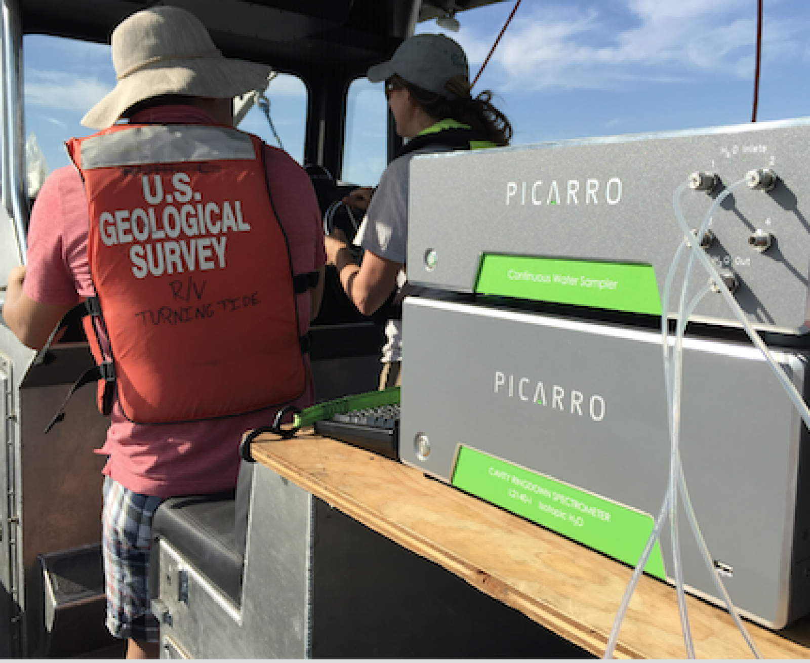 2014年10月1日,Picarro相关人员在USGS所属的R / V Landsteiner(26号船)上进行了6小时的巡航,船上装配了CWS与Picarro L2130-i组合以实时连续测量δ18O和δ2H。这是Picarro新型外围设备CWS首次在船上部署。此外,USGS拥有一套标准的实时、高频仪器装置,可在高船速(10-30英里每小时)上以采样频率为1 Hz的情况下测量硝酸盐、荧光溶解有机物(fDOM)、叶绿素a荧光(fCHLA)、蓝绿藻荧光(藻青蛋白色素)、温度、溶解氧和辅助水质参数。
